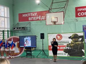 Преподаватели, родители и студенты Новочеркасского машиностроительного колледжа 8 декабря приняли участие в благотворительной ярмарке «Твори добро», в поддержку участников специальной военной операции на территории Украины на базе ГБПОУ РО «НКПТиУ», совместно с Новочеркасским технологическим техникумом-интернатом. На ярмарке студенты представили новогодние украшения, поделки, сувениры, изделия из кожи, большое разнообразие кулинарных изделий, сделанных своими руками, растения и даже животных!