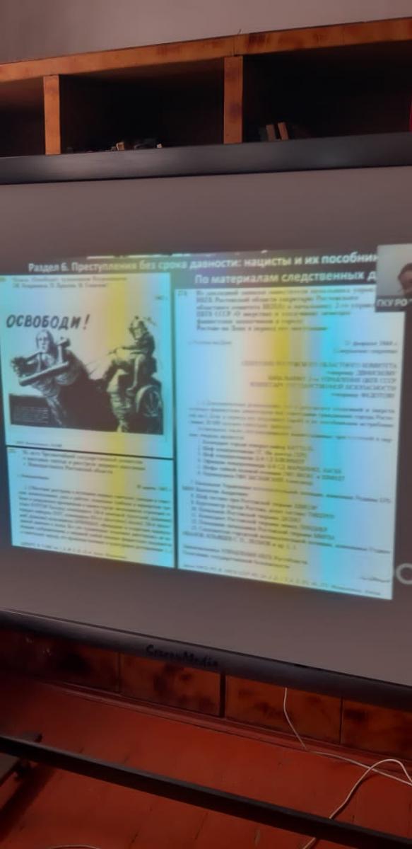 Студенты группы ТЭ-11 приняли участие в онлайн-лекции-презентации по теме "Преступления нацистов и их пособников против мирного населения на оккупированной территории РСФСР в годы ВОВ.Ростовская область" в рамках проекта "Без срока давности"