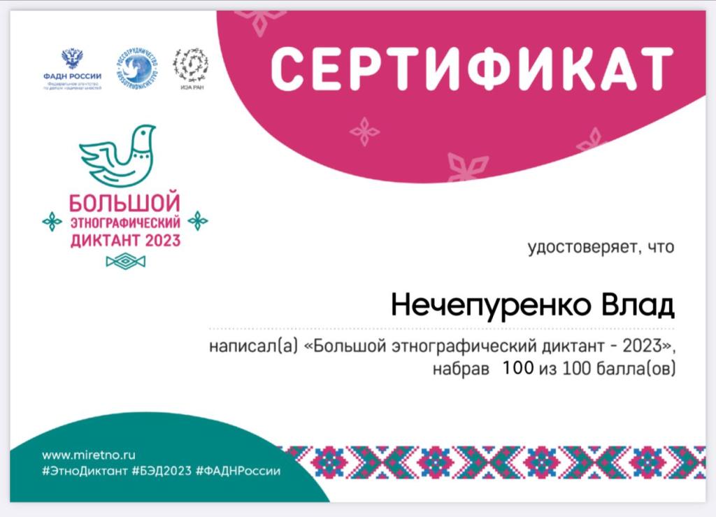 Большой этнографический диктант- это просветительский проект, который знакомит с культурой народов, проживающих в России, а также позволяет оценить общий уровень этнокультурной грамотности.
