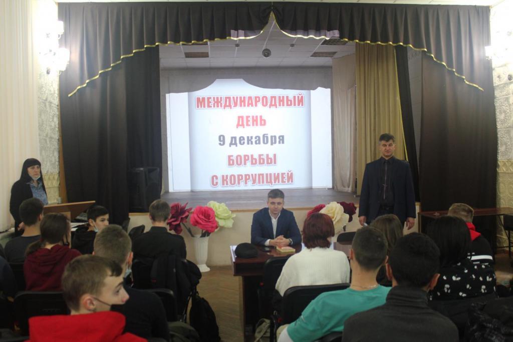 Сегодня, в Международный день борьбы с коррупцией, общий классный час со студентами всех 1-х курсов провел сотрудник отдела экономической безопасности и противодействия коррупции старший лейтенант полиции  Коломийцев Александр Алексеевич. Он объяснил всем присутствующим, что такое коррупция, проинформировал об основных мерах противодействия коррупции, рассказал о необходимости уведомления в случаях склонения к коррупционным правонарушениям и об ответственности двух сторон в совершении деяния, а так же о том, что ответственность за дачу взятки наступает уже с 14-летнего возраста. В заключение встречи Александр Алексеевич ответил на все вопросы, интересующие студентов, и напомнил о необходимости своевременно сообщать в полицию о вымогательствах.