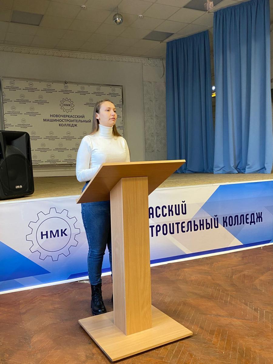 Именно в этот день, 13 ноября в Новочеркасском машиностроительном колледже был проведен Урок Добра с амбассадором добровольчества Ростовской области, города Новочеркасска Елизаветой Сергеевной Подпуско.