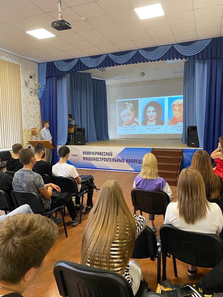 Сегодня в Новочеркасском машиностроительном колледжа провели памятную акцию для студентов 1-х курсов, где рассказали о страшной трагедии, о том, кто такие террористы и о том, что не нужно бояться, ведь наш страх делает их только сильнее, но всегда необходимо быть внимательным и бдительным!