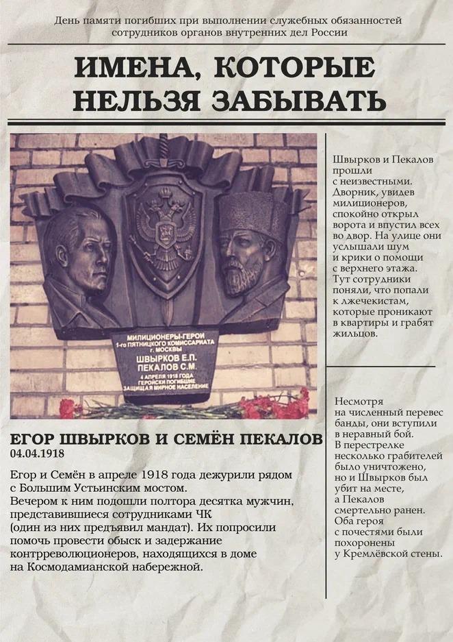 История МВД насчитывает бесчисленное количество примеров высокого профессионализма, героизма, мужества и благородства личного состава полицейских подразделений. Профессия сотрудника полиции – одна из самых опасных в современном мире. Вступая в открытое противоборство с преступниками, полицейские ежедневно подвергают свою жизнь огромному риску. К сожалению, не обходится без боевых потерь