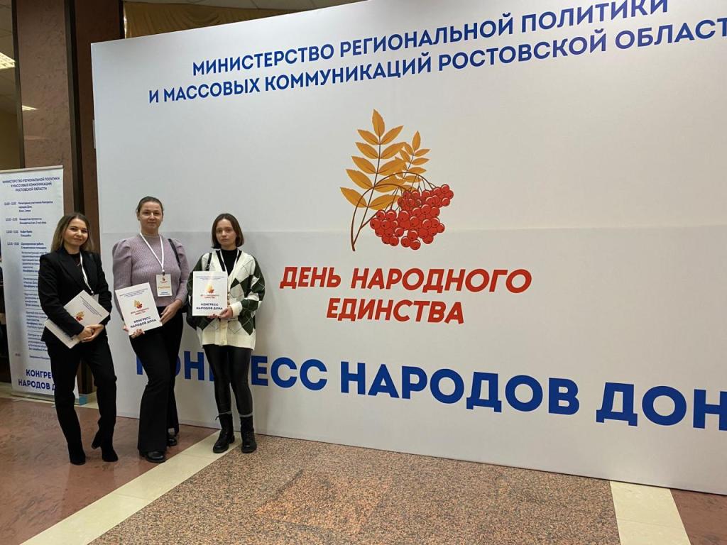 Делегация Новочеркасского машиностроительного колледжа в составе: советника директора по воспитанию и взаимодействию с детскими общественными объединениями А.П. Видюковой, социального педагога Е.А. Балановской и педагога-организатора О.В. Кручины 28 ноября приняли участие в конгрессе народов Дона в конгресс-холле ДГТУ г. Ростова-на-Дону.