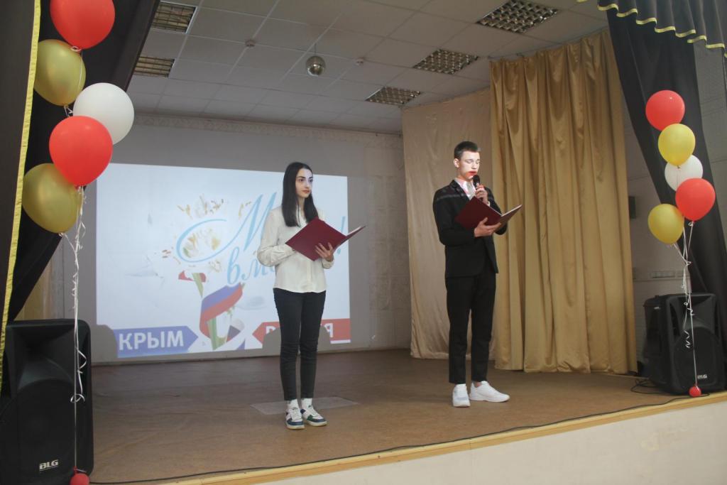 Сегодня Новочеркасский машиностроительный колледж, встретил «Крымскую весну» патриотическим мероприятием. Открыли мероприятие прослушиванием гимнов России и Крыма, после чего с приветственным словом выступил директор колледжа Сергей Евгеньевич Федоров. Студентам были рассказаны исторические факты, а так же с вокальными номерами выступили солисты центра воспитания и досуга «Эстетика»- Диана Полякова, солистка Образцового коллектива вокальной студии «Орфей», руководитель Виктория Рубцова и Екатерина Горбачева, солистка музыкально-вокальной студии «7нот», руководитель Наталия Погорелова.