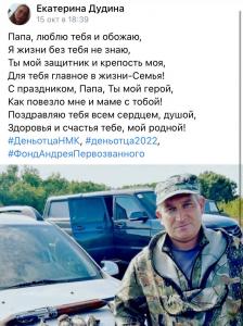 С 12 по 16 октября студенты Новочеркасского машиностроительного колледжа, приняли участие во Всероссийском семейном флешмобе «Мой папа-пример и опора», приуроченном к празднику «День отца». Участники публиковали рисунки и фотографии с поздравлениями и словами благодарности своим любимым папам.