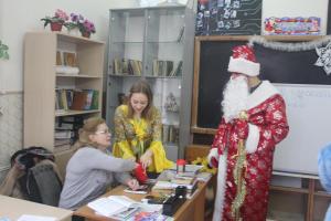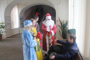 Новогодняя волшебница предлагала преподавателям вытянуть из волшебного мешочка предсказание на будущий год. Дед Мороз и Снегурочка угощали всех конфетами и мандаринами!
