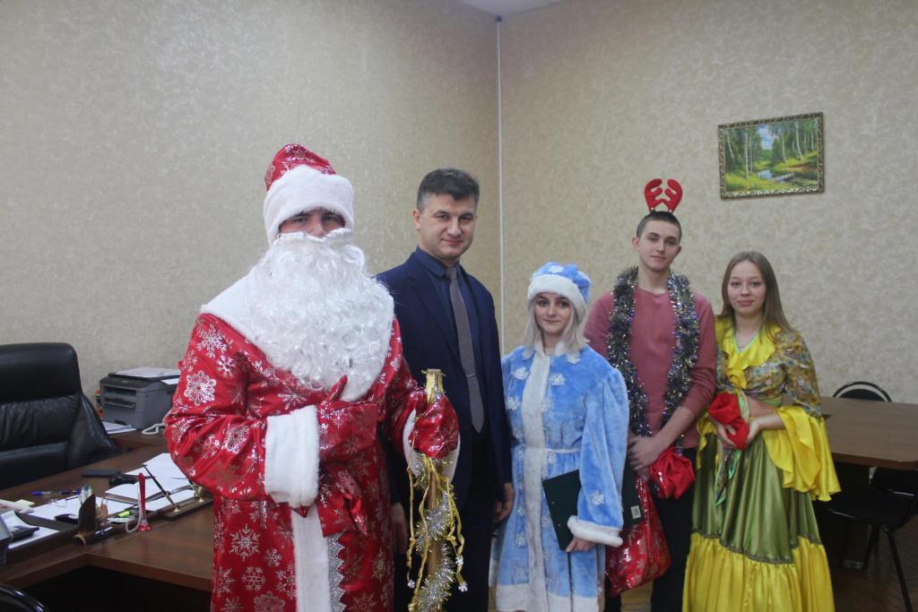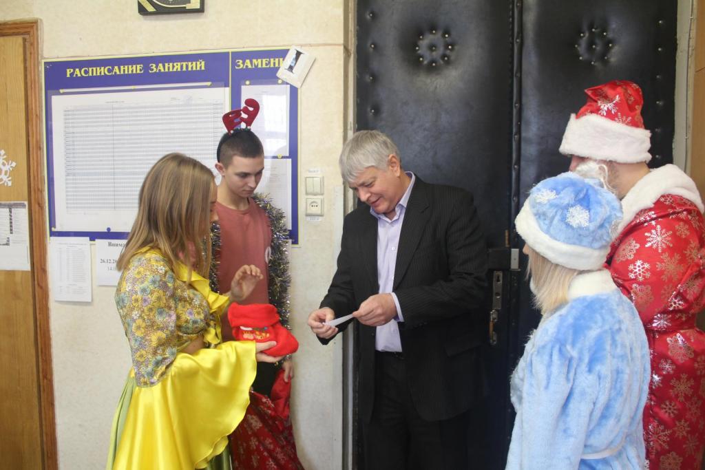 Он с новогодним приветствием зашел в каждый кабинет, поздравил преподавателей и студентов с предстоящим праздником Нового года!