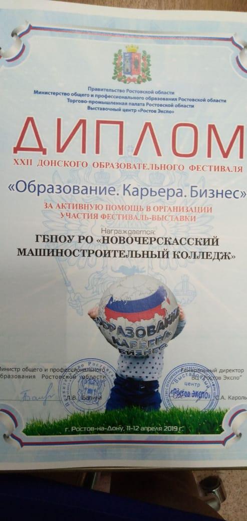 11-12 апреля 2019 года представители Новочеркасского машиностроительного колледжа приняли активное участие в ХХII Донском образовательном фестивале «Образование. Карьера. Бизнес»