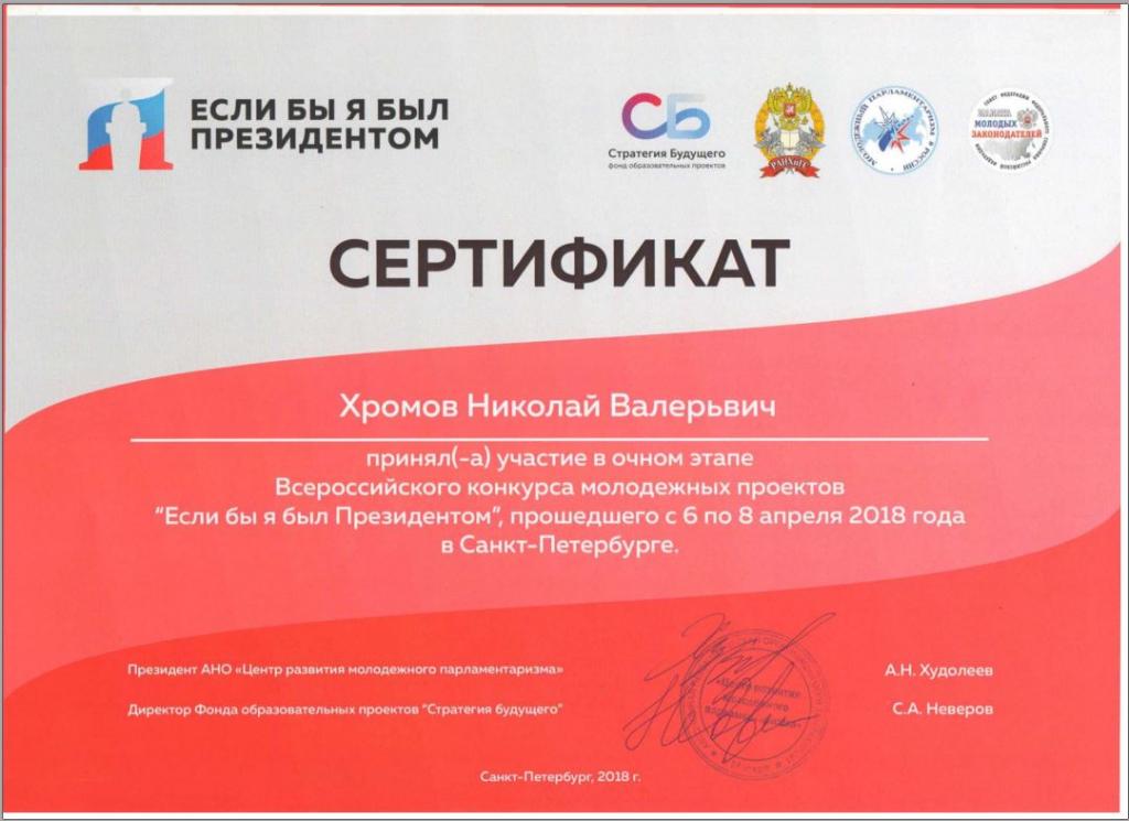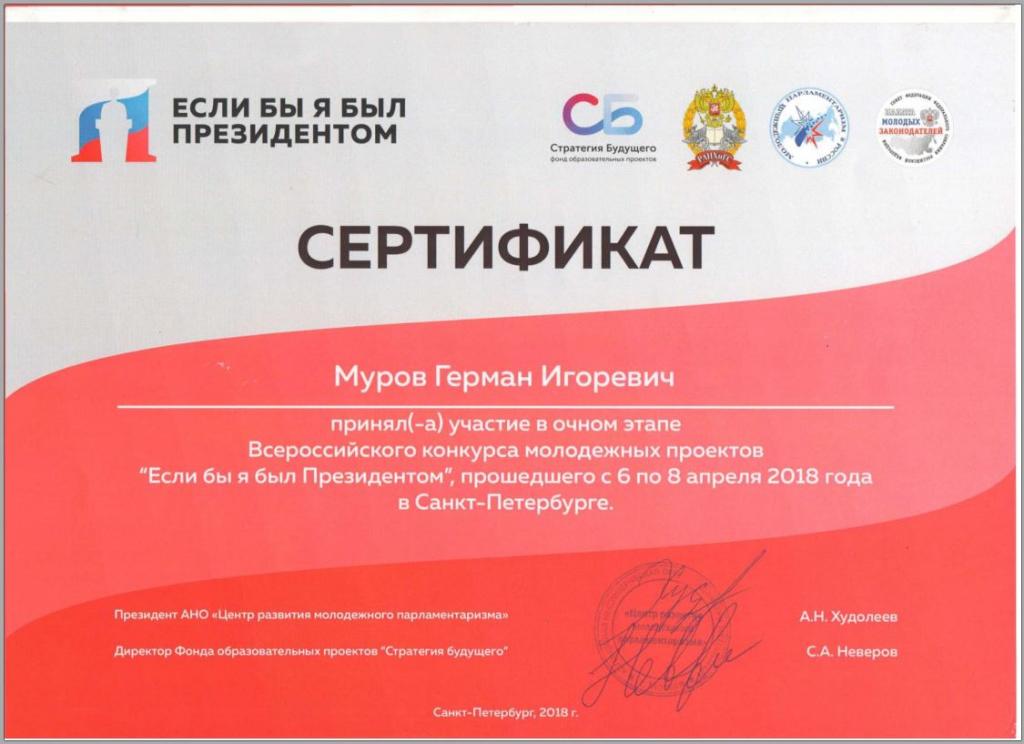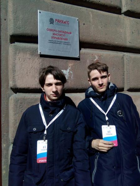 6-8 апреля 2018 г. студенты Новочеркасского машиностроительного колледжа Муров Герман (ТК-11) и Хромов Николай (АТ-12) приняли участие в очном этапе Всероссийского конкурса молодежных проектов «Если бы я был Президентом» в Санкт-Петербурге. Подготовила студентов преподаватель истории Буйновская Ольга Петровна. Сопровождала их в поездке педагог дополнительного образования Иванова Мария Михайловна. Колледж предоставил возможность ребятам осуществить эту поездку.