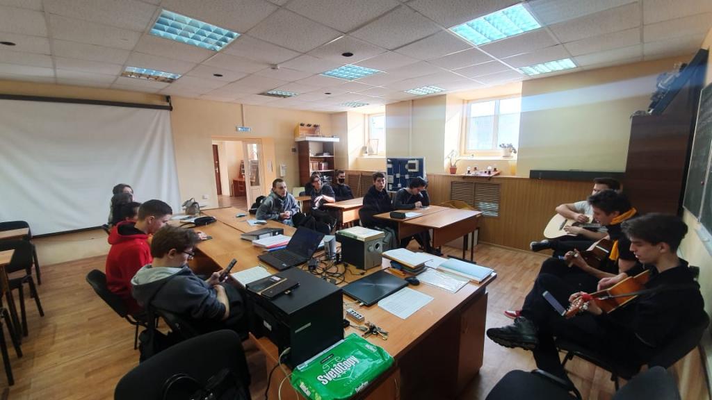 Студенты группы Адонин Ю.В., Поташев А.Р., Марьяненко И.А. решили украсить доклад о истории праздника, великих русских полководцах и военных действиях музыкальным творчеством, а именно живым исполнением военно-патриотических песен на гитарах (Кукушка, Катюша, Солдат, Любимый город и Журавли).