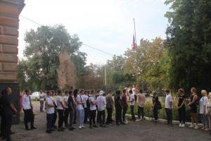 Право открыть нашу торжественную линейку и поднять флаг Российской федерации предоставилось в этом году: Макееву Кириллу группа С-21, Морозову Максиму С-21,Голубченко Веронике студентке группы А-21 и Иванову Егору А-21 из числа самых активных студентов колледжа, которые уже достигли высоких результатов в учебе, спорте, культуре и общественной деятельности. Гордость нашего колледжа!