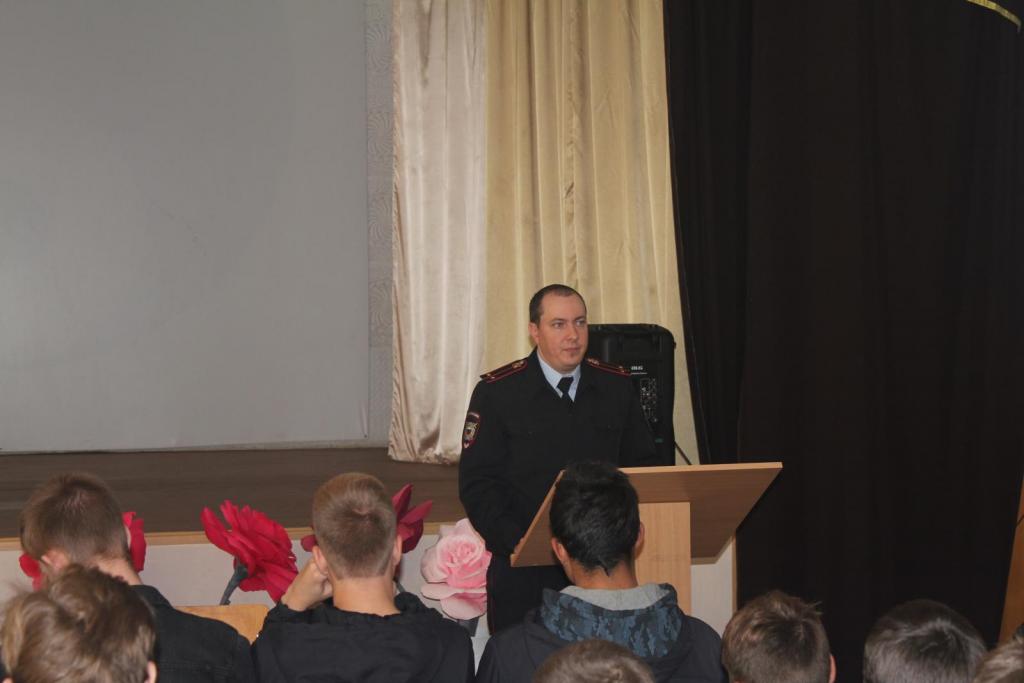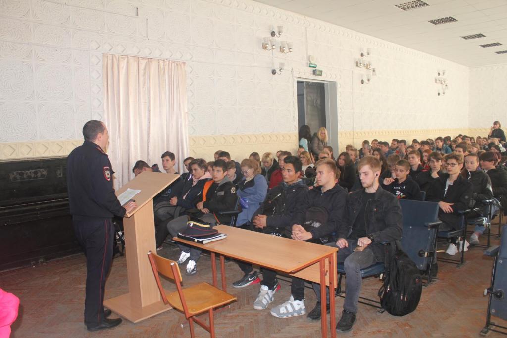 В четверг студентов всех курсов пригласили в актовый зал на встречу с инспектором ПДН, младшим лейтенантом полиции ОП-1 МУ МВД РФ «Новочеркасское» Леонтьевым А.А.
